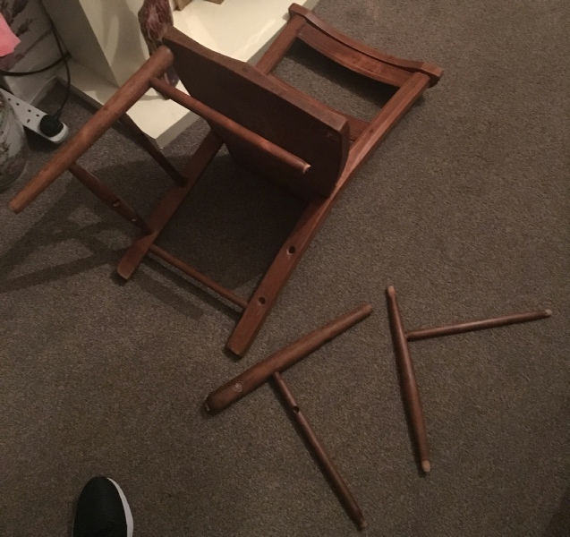 This chair is over 100 years old and used to be in Peterborough cathedral. The legs