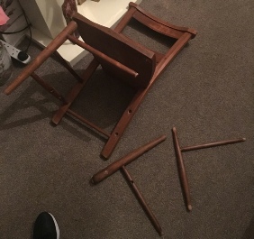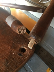 by fitting a new dowel into the snapped leg and gluing everything back into place.