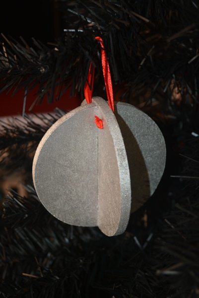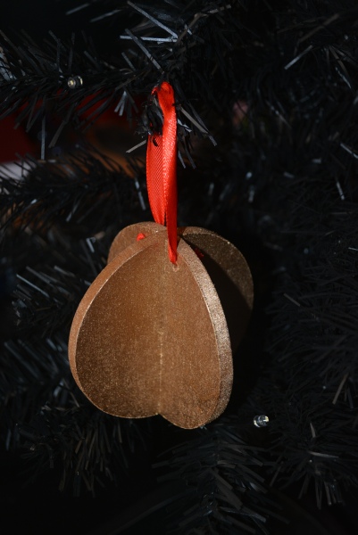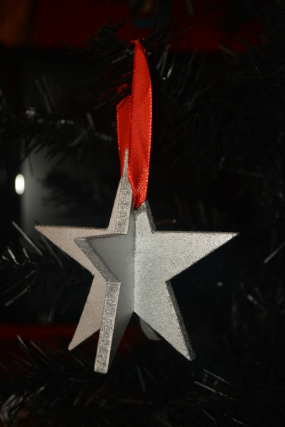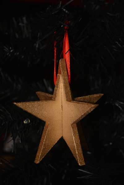 Three different styles of bauble are available in different colours. Stars, 3D circles and 2D circles. They are available in gold, gold with gold sparkles (Shown above), silver or silver with gold sparkles (Shown above). Each one comes with red ribbon and will be different to the next as each item is handmade.