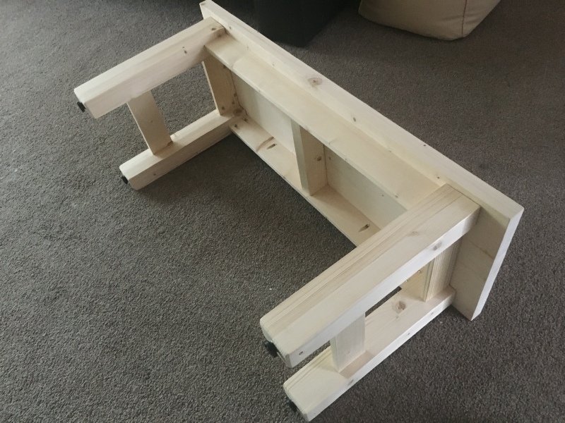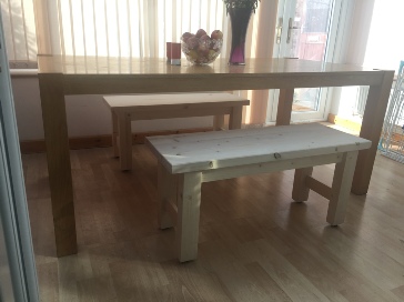 I was asked to make 2 pine benches to go with a dining table. I first glued up 2 panels for the bench tops with dowel joinery to keep everything aligned. After planing, routering and sanding them I began work on the frames. I used pocket holes and dowels for the joinery. I added chamfers to the bottoms of the legs for a more finished look. I also added adjustable plastic feet to the bottom of the legs to adjust the bench to sit level on an uneven floor.