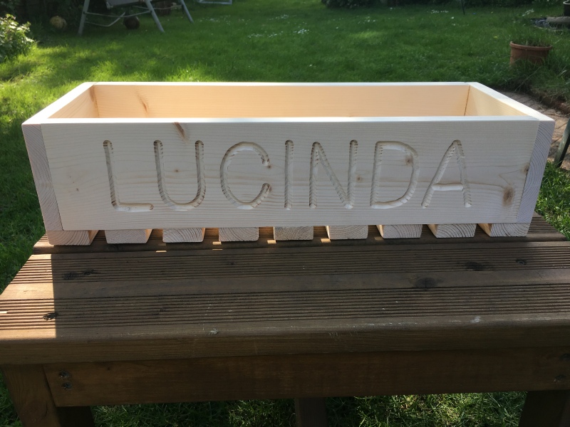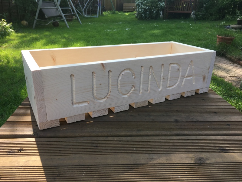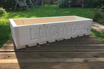 Personalised planter comes ready for a liner and desired stain. It measures approx 56cm wide, 20cm deep and 13cm tall. Perfect as a gift for anyone interested in gardening.